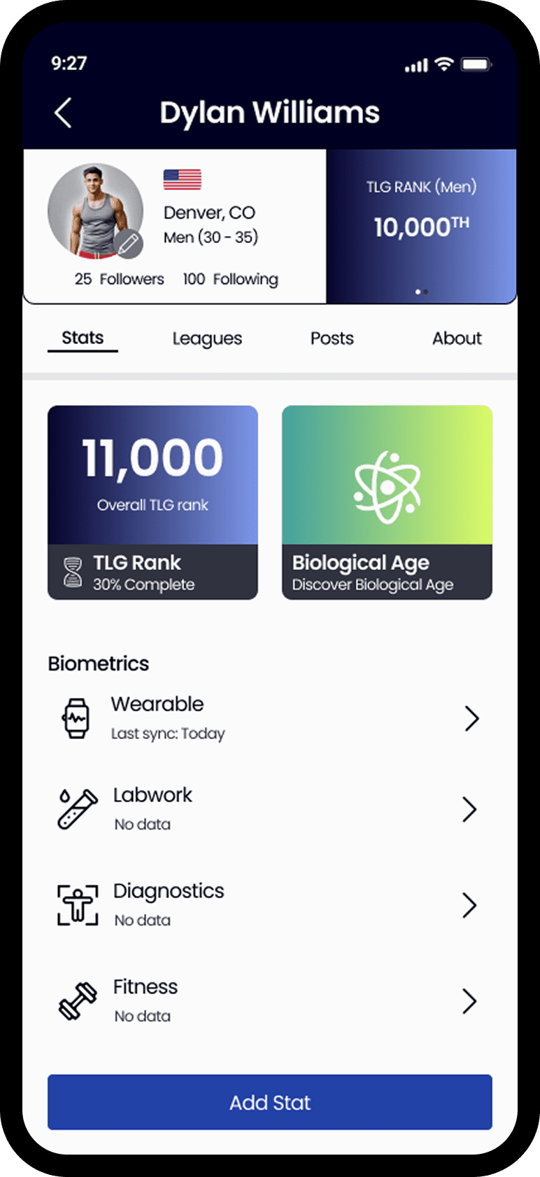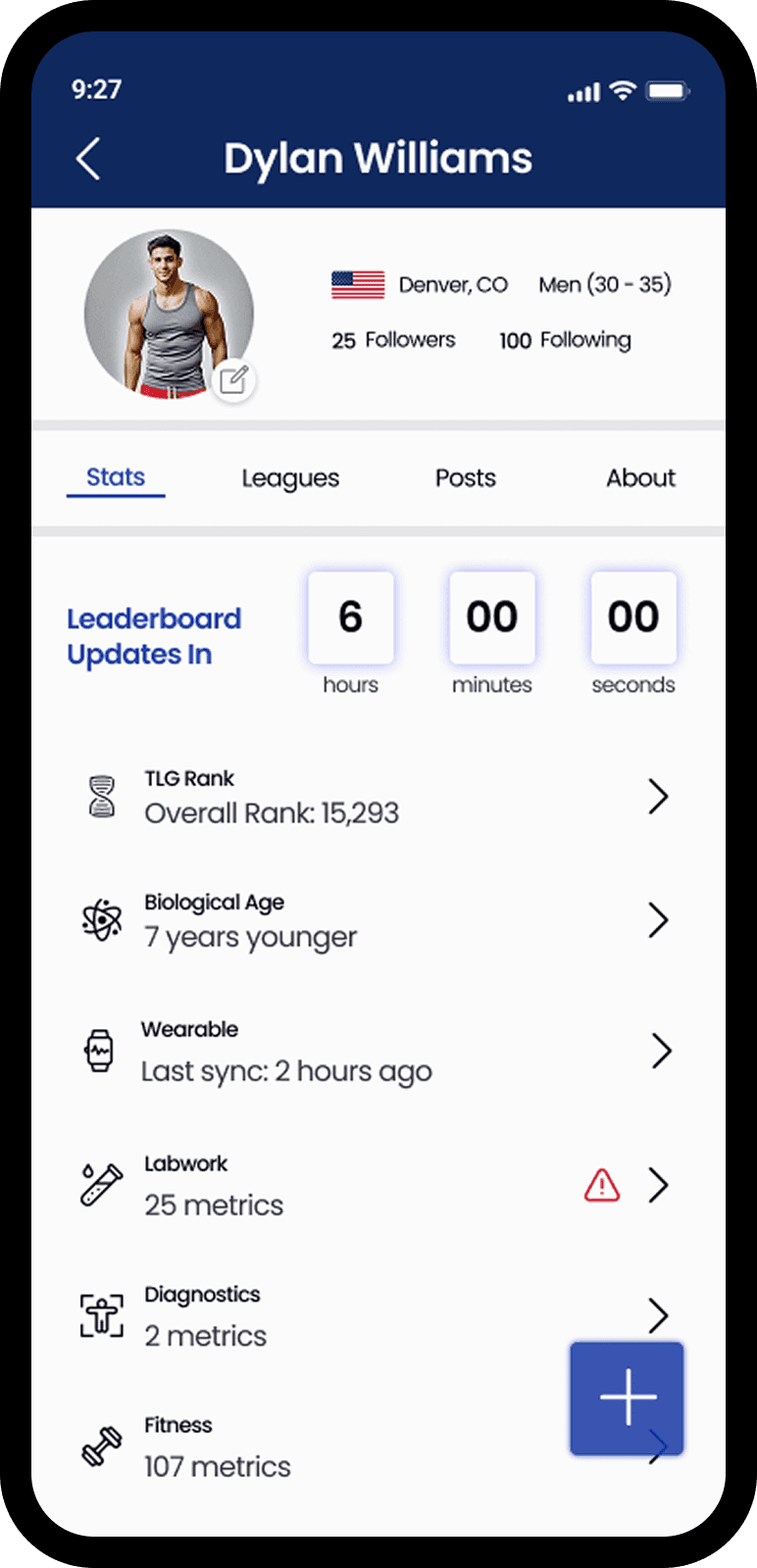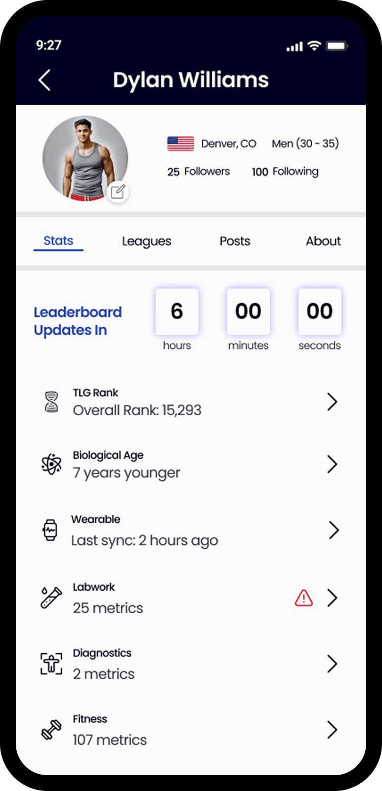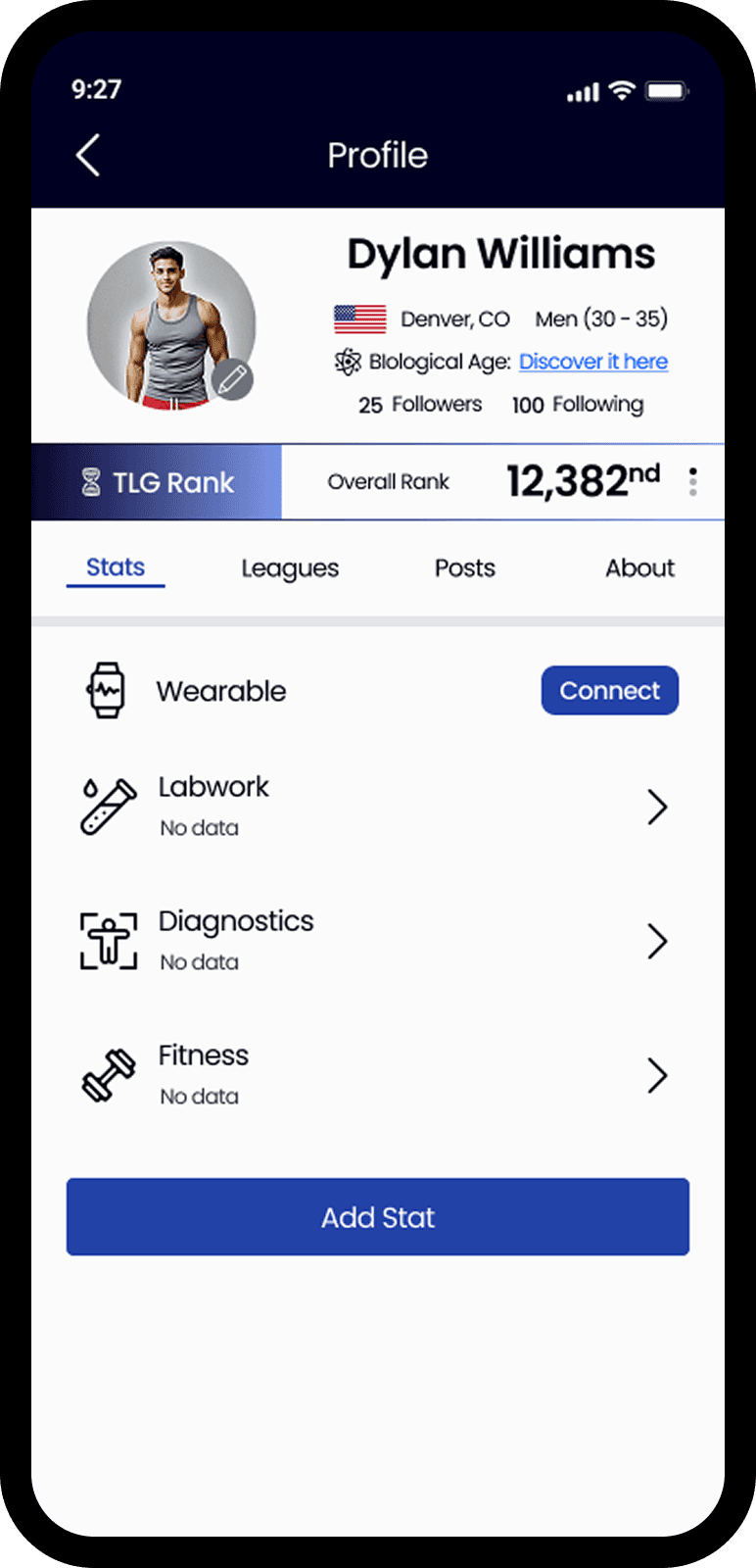 Users lack a centralized platform that integrates comprehensive health data with meaningful, motivating experiences, making it difficult to consistently engage with and act on their longevity goals. The challenge was to design a solution that not only aggregates personal health records but also leverages competition to drive sustained behavior change and engagement.